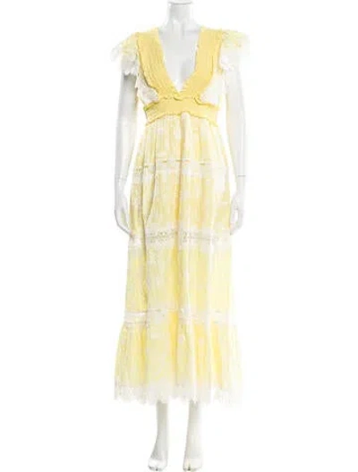 Pre-owned Lace Pattern Long Dress In Yellow
