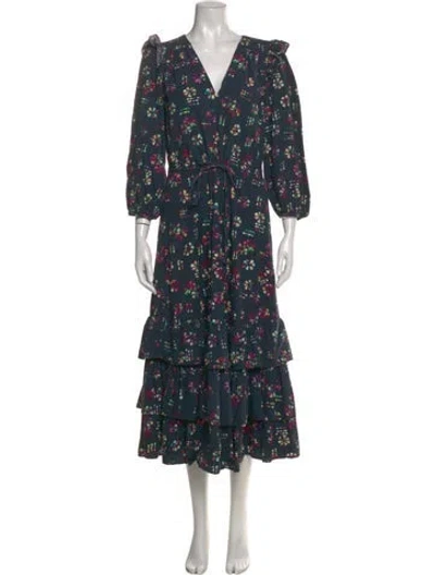 Pre-owned Floral Print Midi Length Dress In Blue