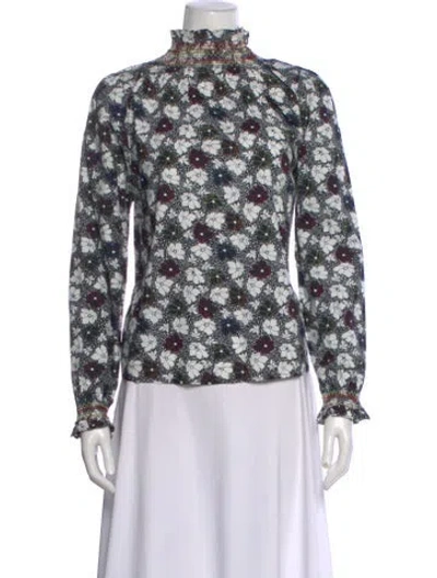 Pre-owned Floral Print Turtleneck Blouse In Multi
