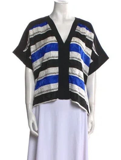 Pre-owned Printed V-neck Blouse In Black