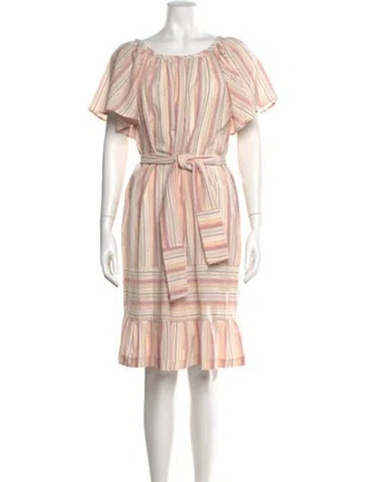 Pre-owned Striped Midi Length Dress In Neutral