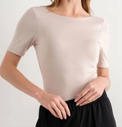 Leah Scrunched Low Back Short Sleeve Bodysuit In Taupe In Brown