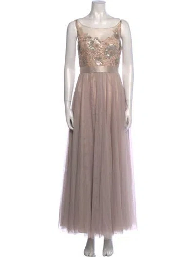 Pre-owned Bateau Neckline Long Dress In Brown