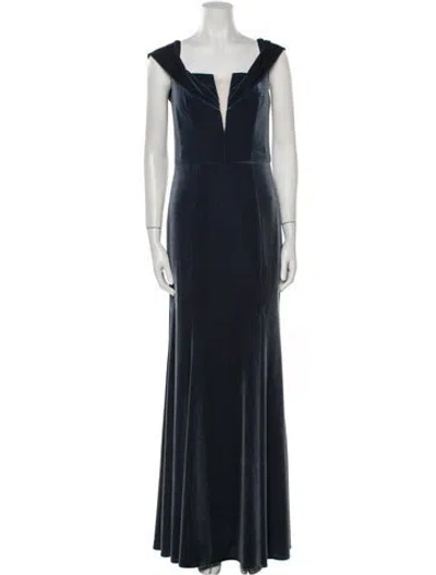 Pre-owned Bateau Neckline Long Dress In Blue