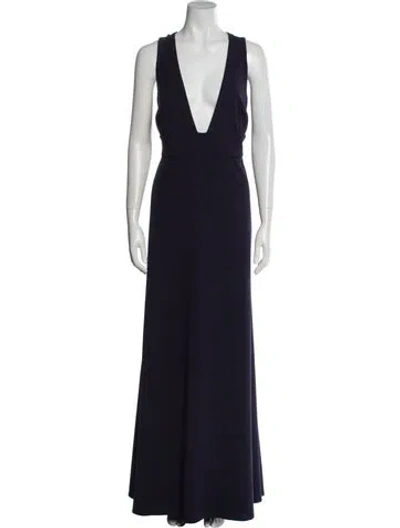Pre-owned V-neck Long Dress In Blue