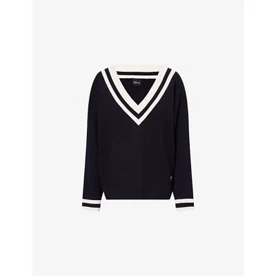 Omens Oversized Cricket Knit Jumper In Blue