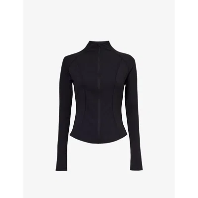 Womens Black Marl Sculpt Seamless Panelled Stretch-recycled Nylon And Polyester Jacket