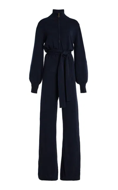 Setesdal Belted Fringed Intarsia-knit Merino Wool And Cashmere-blend Cardigan In Blue