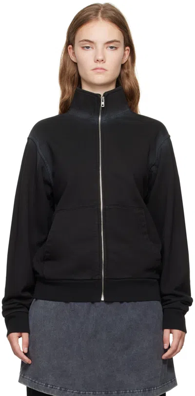 Zippered Hooded Sweatshirt In Black