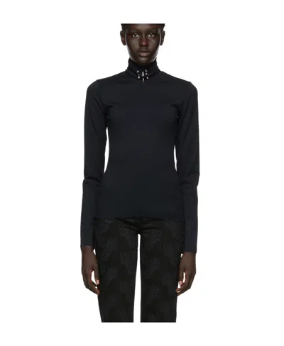 High-neck Studded Long Sleeve Top In Black