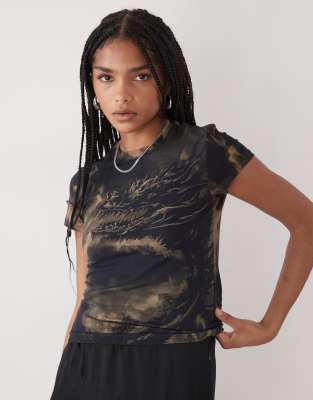 T-shirt With All Over Dragon Graphic Print In Black