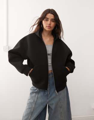 Scarlet Oversized Scuba Zip Through Hoodie In Black
