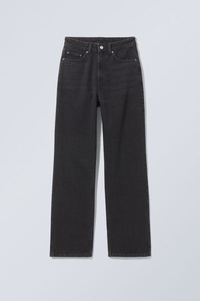 Voyage Cotton High Rise Straight Leg Button Front Jeans In Black - Black