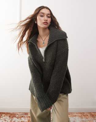 Jodi Zip Through Funnel Neck Sweatshirt In Gray