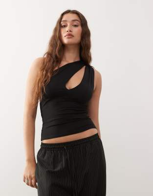 One Shoulder Top With Slash Detail In Black