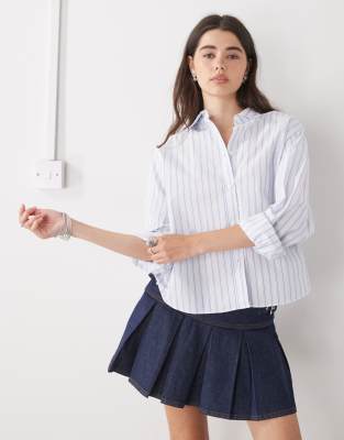 Zip Through Shirt With Flared Sleeve Detail In Neutral