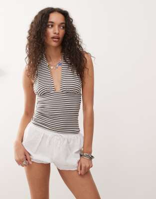 Deep Halter Neck Top In White