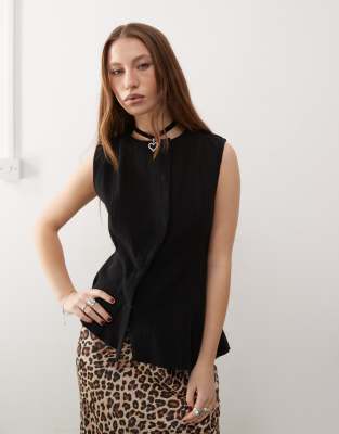 Ibis Asymmetric Peplum Top With Concealed Buttons In Black