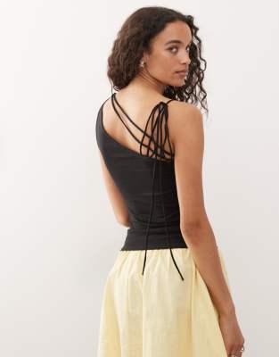 Strappy One Shoulder Top In Black