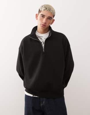 Boxy Oversized Fit Half Zip Sweatshirt In Black