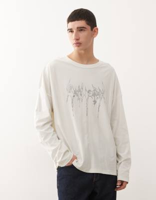 Oversized Long Sleeve Graphic Top In White