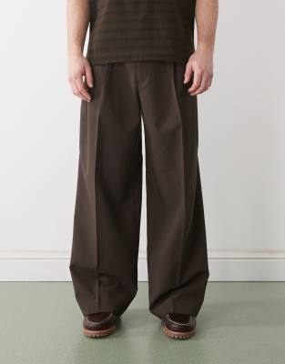 Oversized Tailored Pants With Elastic Waistband In Brown