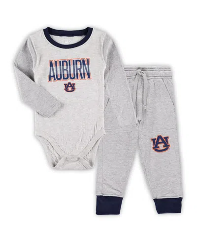 Kids' Baby Boys And Girls Heather Gray Auburn Tigers Jie Long Sleeve Bodysuit And Pants Set