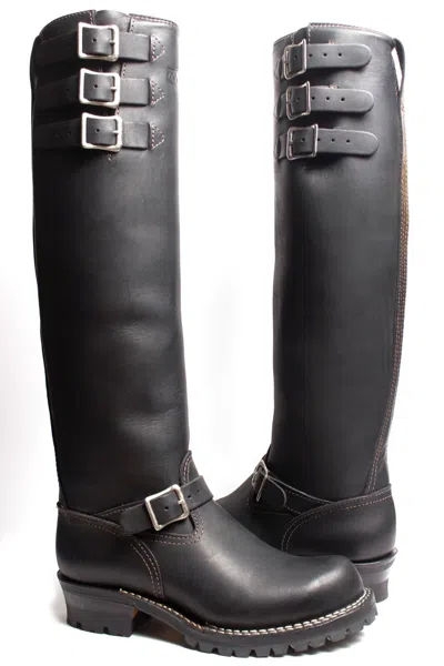 Pre-owned 16'' Jobmaster Black Boots With Nickle Hardware Bk116100