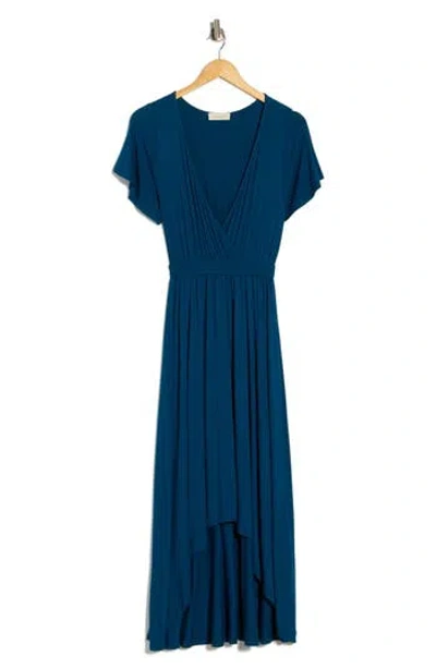 Flutter Sleeve High/low Wrap Dress In Burgundy