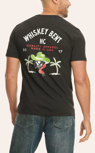 Bent Hat Co. Men's Black & Cowboy Skull & Palms Logo Graphic Short Sleeve T-shirt