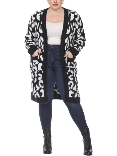 Plus Womens Knit Leopard Cardigan Sweater In Black