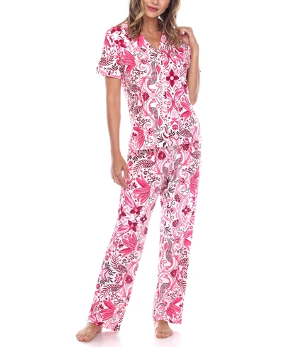 Women's Short Sleeve Pants Tropical Pajama Set, 2-piece In Pink