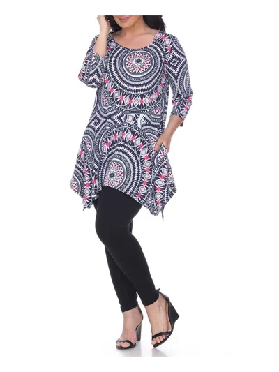 Plus Womens Printed Handkerchief Hem Tunic Top In Multi