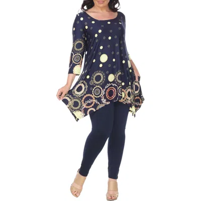 Plus Womens Printed Sharkbit Hem Tunic Top In Blue