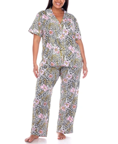 Plus Size Short Sleeve Pants Tropical Pajama Set, 2-piece In Leopard