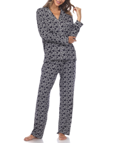Women's 2 Piece Long Sleeve Heart Print Pajama Set In Blue