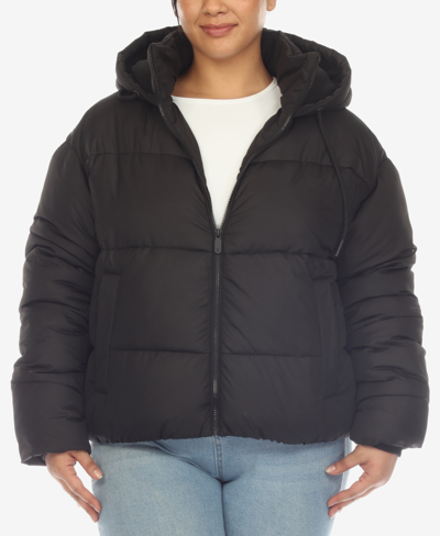 Plus Size Quilted Puffer Crop Jacket With Hood In Black