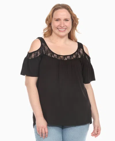 Plus Size Cold Shoulder Lace Trim Knit Top In Black