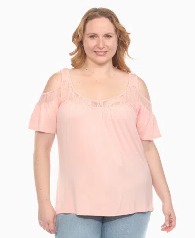 Plus Size Cold Shoulder Lace Trim Knit Top In Pink