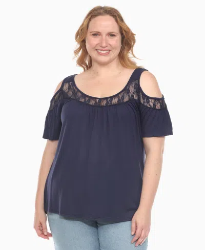Plus Size Cold Shoulder Lace Trim Knit Top In Blue