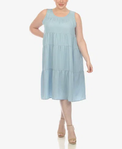 Plus Size Sleeveless Tiered Chambray Midi Dress In Denim Blue