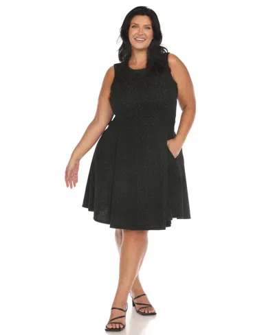 Plus Size Tweed Fit And Flare Dress In White