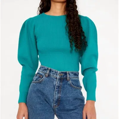 Round Neck Ribbed Sweater In Green In Blue