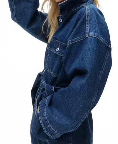 Bustier Cropped Denim Top In Dark Denim In Blue