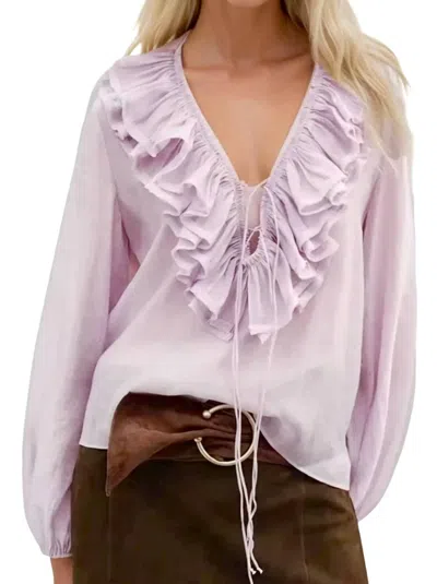 Ruffled Lace Up Blouse In Lavendar In Purple
