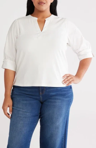 Mixed Media Puff Sleeve Top In White