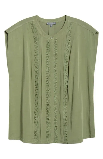 Lace Trim Mix Media Top In Green