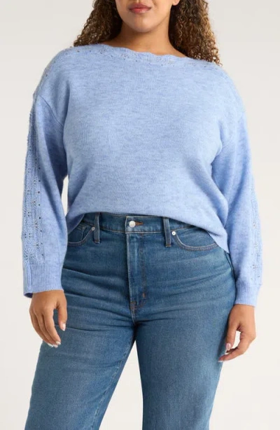 Open Stitch Boat Neck Sweater In Blue
