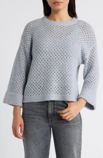 Open Stitch Cuffed Sweater In Blue Shadow