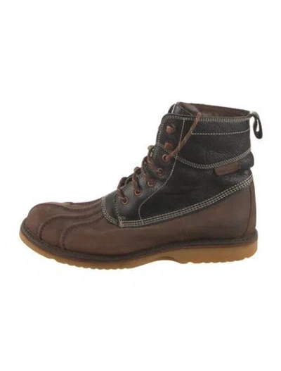 Pre-owned Leather Colorblock Pattern Hiking Boots In Black